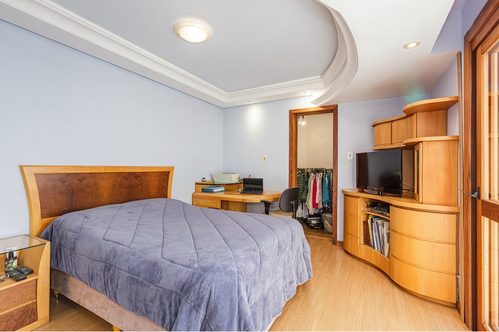 No segundo piso, estão a suíte, ensolarada, com closet integrado, com acesso a um terraço aberto, também muito iluminado.