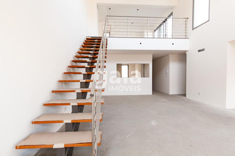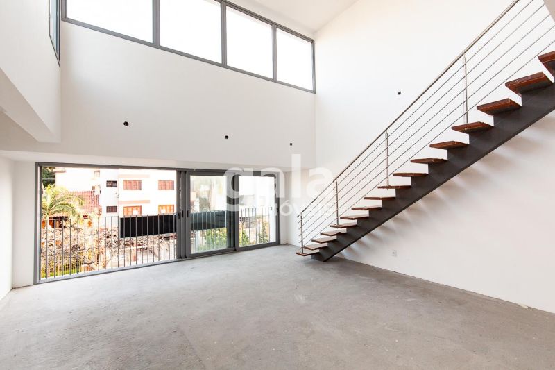 Cobertura duplex em estilo Loft, com pé direito duplo na sala.