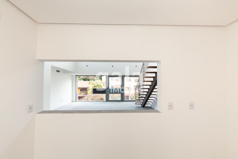 Andar inferior com 3 dormitórios, sendo 1 suíte com closet, hall com lavabo, living para dois ambientes com 38m² e janelas panorâmicas, cozinha com conceito aberto e churrasqueira, área de serviço separada;.