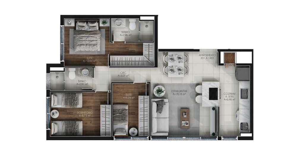 Cada espaço foi projetado para proporcionar um verdadeiro refúgio nas alturas, onde a conexão com a natureza é constante e a vista oferece um espetáculo diário de tranquilidade e beleza.