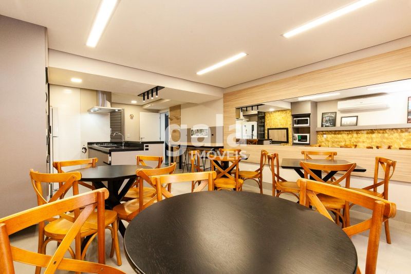 Edifício com poucas unidades, elevador, salão de festas e câmeras de segurança por aplicativo.