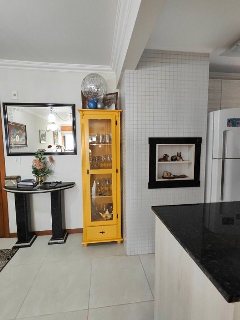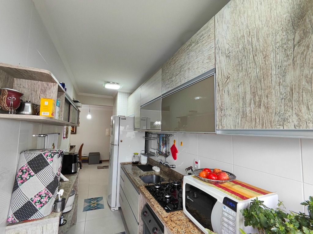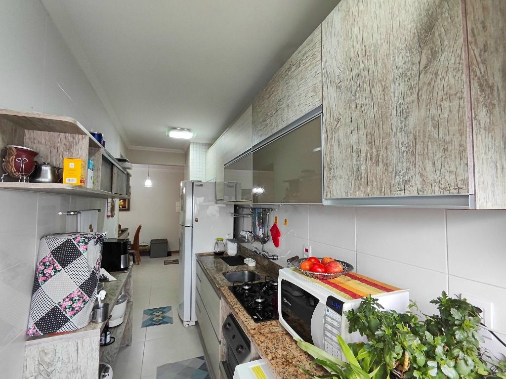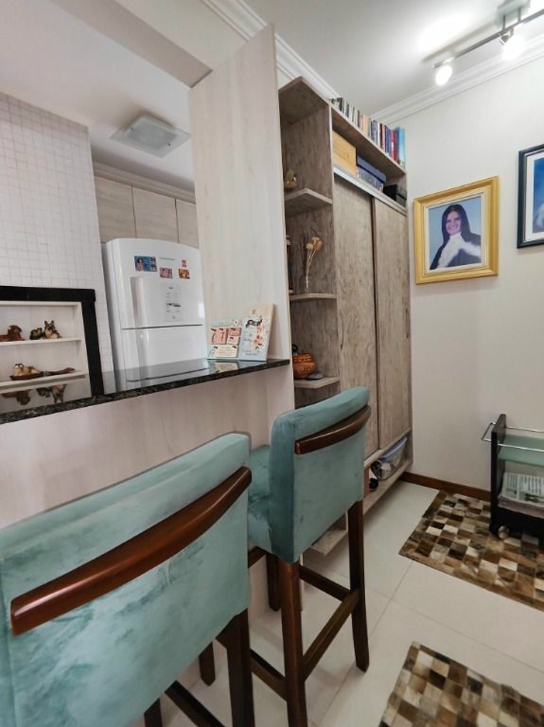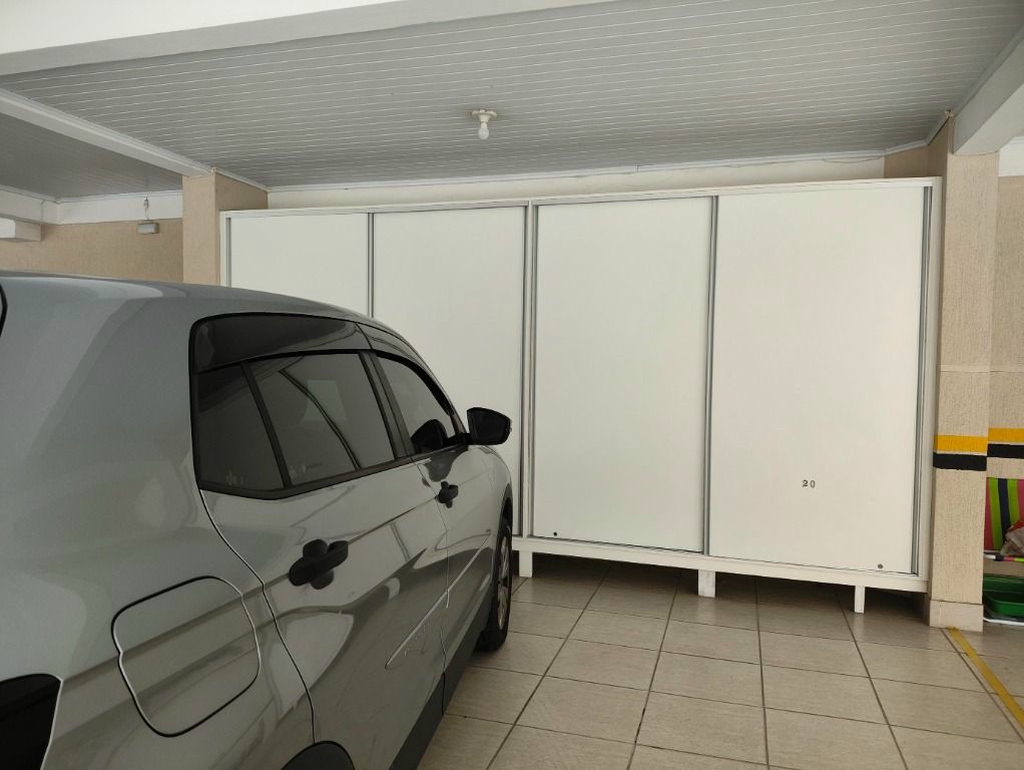 Edifício seminovo, com 12 unidades, elevador, medidores individuais de água e gás. Duas vagas de garagem lado a lado, cobertas e com armário para depósito.