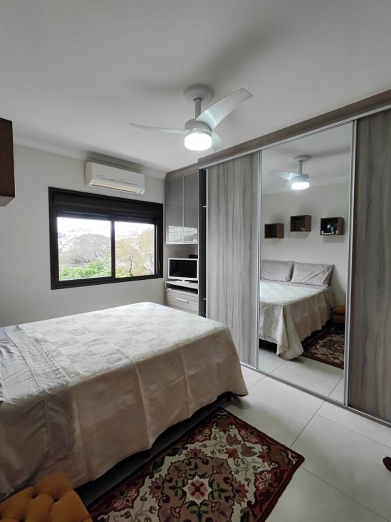 Apartamento Semimobiliado de 2 dormitórios (01 suíte) e 2 vagas de garagem no bairro Jardim Botânico. Living amplo para dois ambientes, churrasqueia, cozinha aberta com armários aéreos, balcão com pia, cooktop e aquecedor de passagem. Ambos os banheiros montados com balcões, espelhos e blindex. Suíte com armários sob medida.