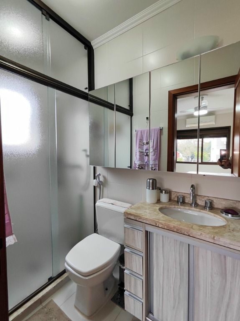 Aparelhos splits instalados no living e dos dois dormitórios. Imóvel de frente, último andar, bem ventilado e ensolarado (Leste e Norte), piso todo em porcelanato Portinari, pias dos banheiros em mármore travertino, metais Deca.