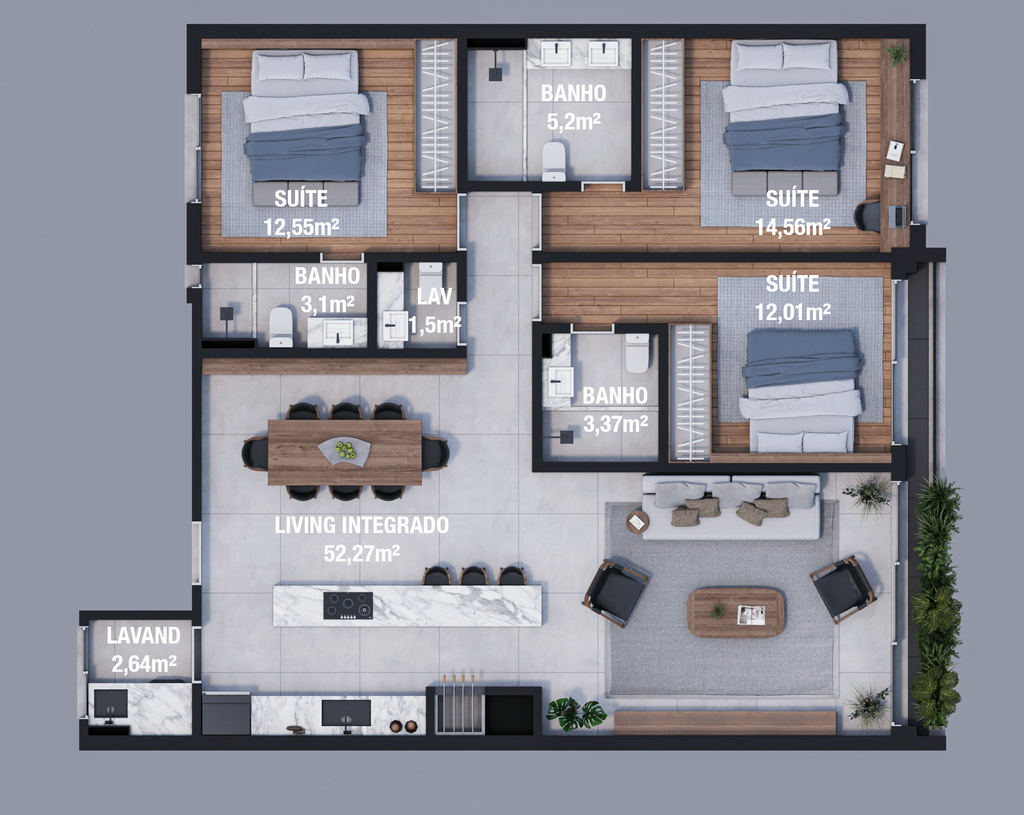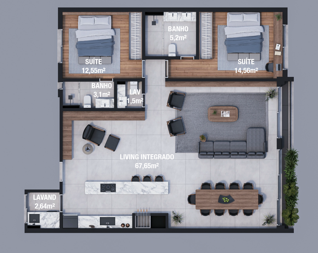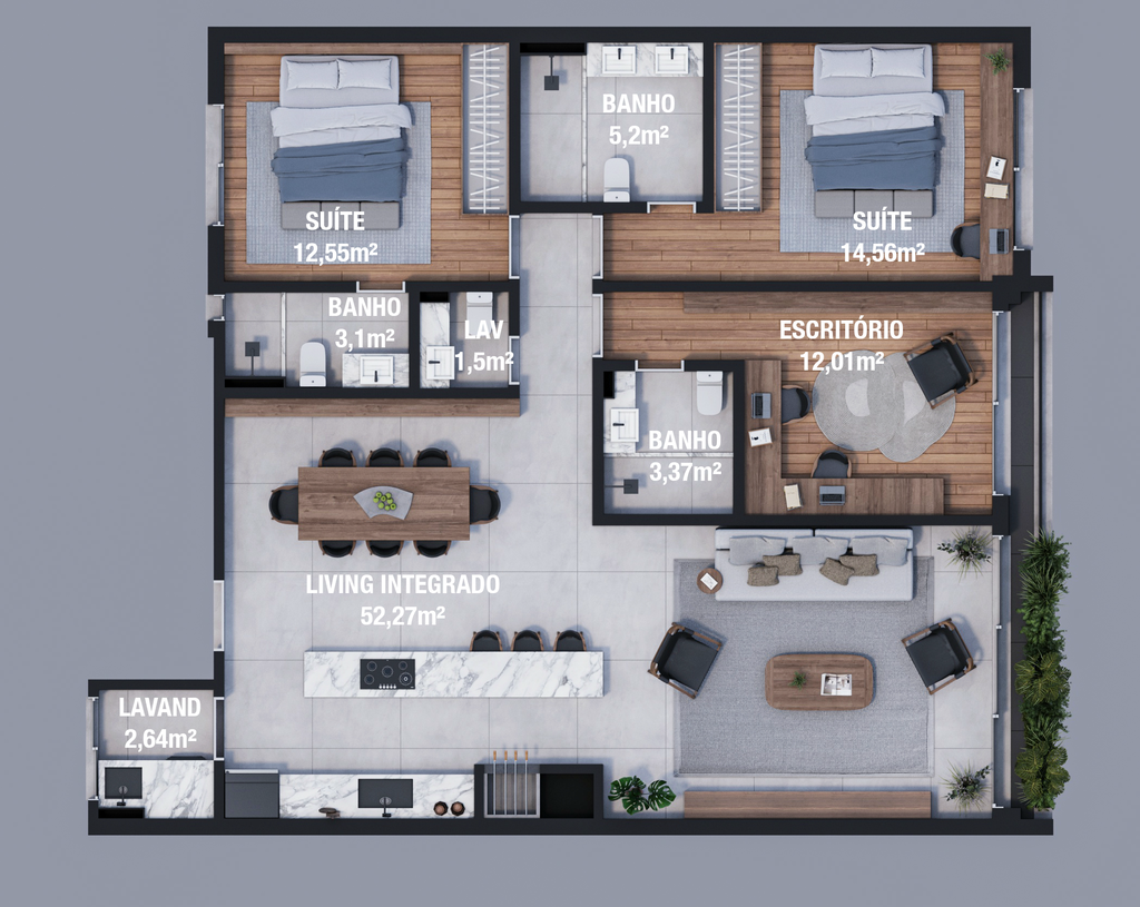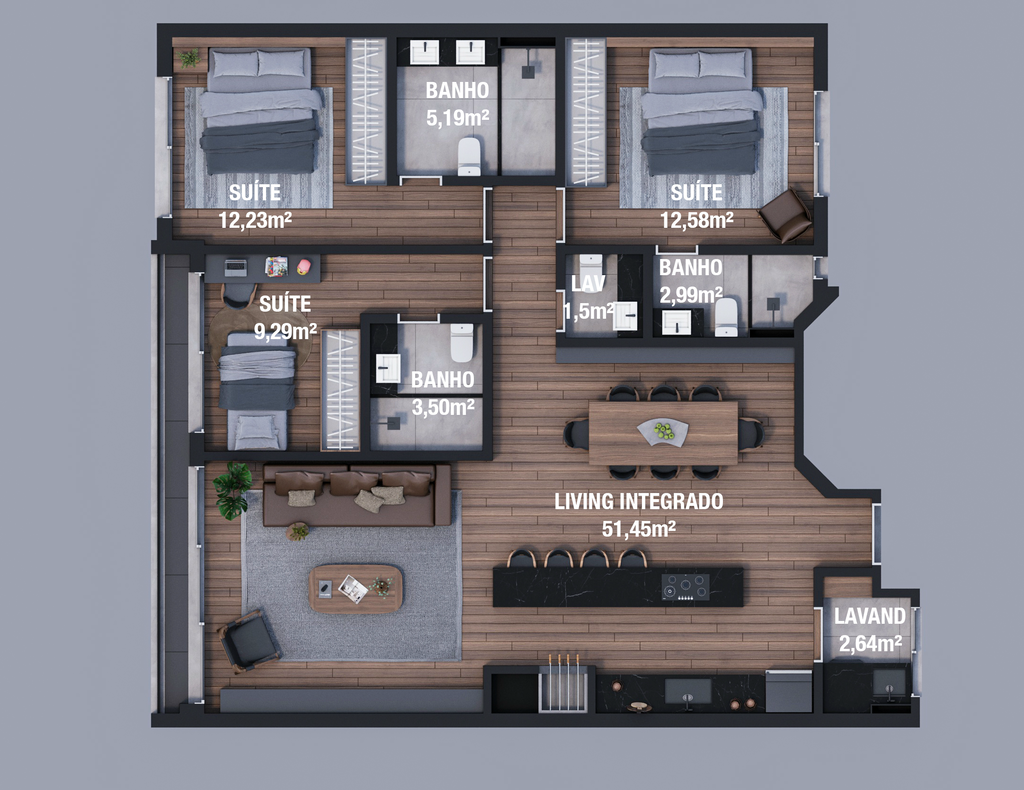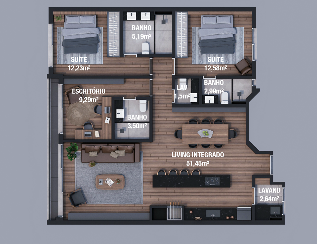 Desde o mobiliário assinado até a escolha dos materiais, o projeto alia o melhor em conforto, luxo e exclusividade.