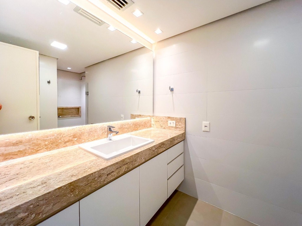 Ao lado do hall tem um espaço com a possibilidade de ser transformado em lavabo. Pé direito alto. Na área íntima o gabinete, 4 dormitórios sendo um deles suíte, o banheiro da suíte com duas cubas, 2 banheiros.