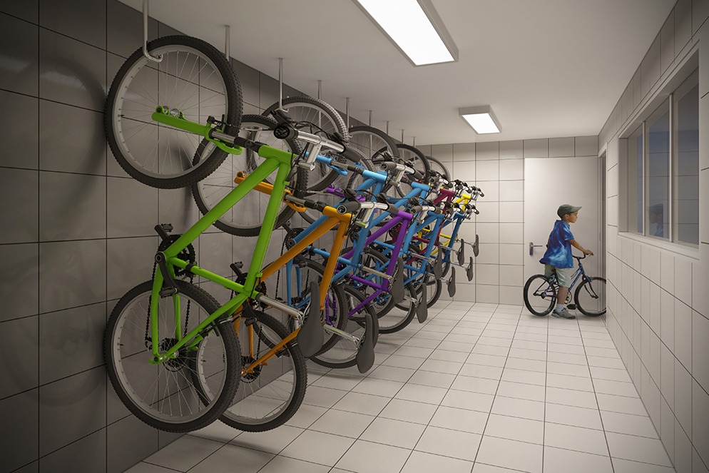 Estacionamento com 102 vagas rotativas e um hall social multiuso.