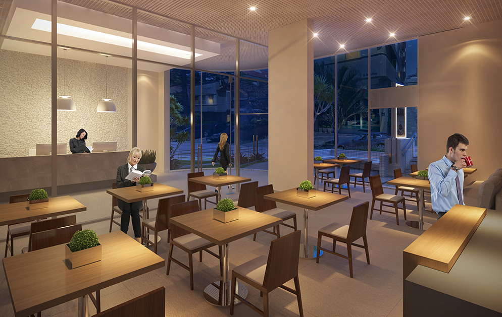 Apartamentos studio de 33m², apartamentos com living de 37 e 43m², todos com possibilidade de modulações.