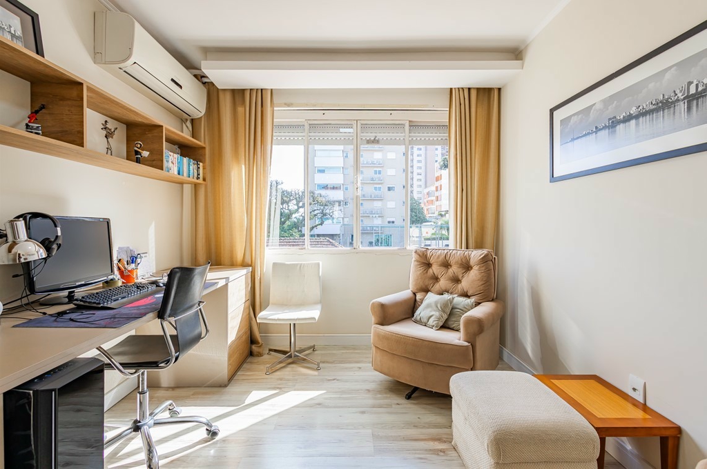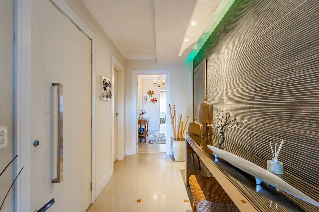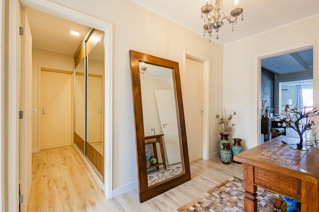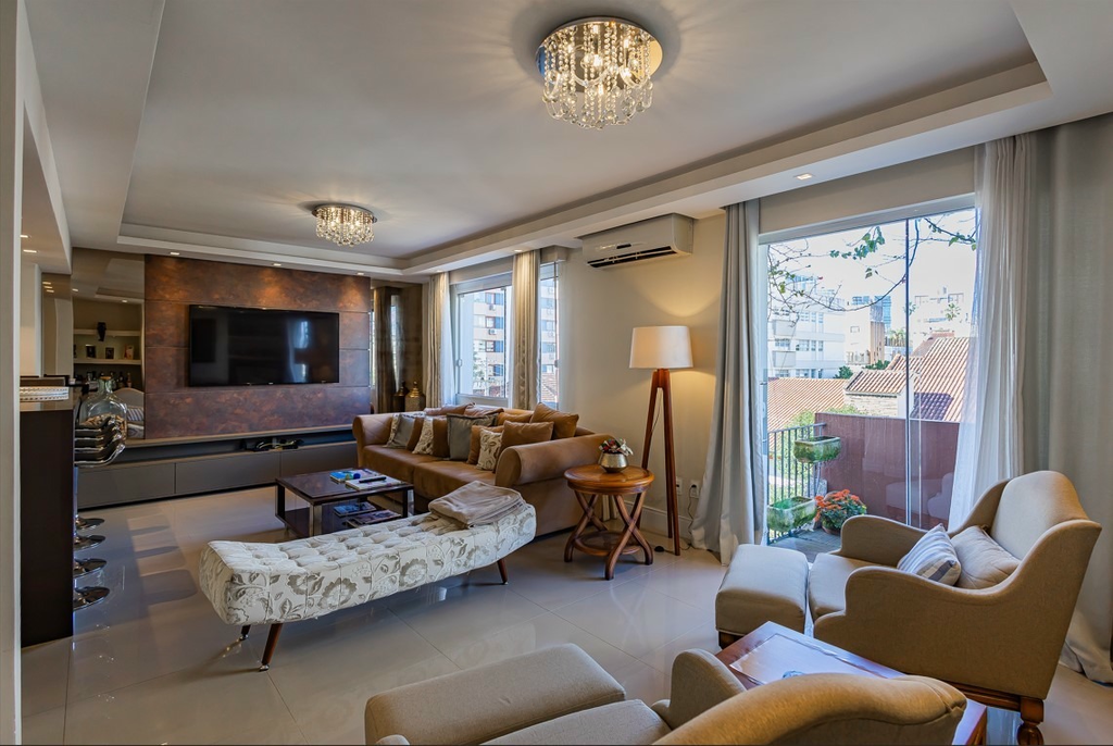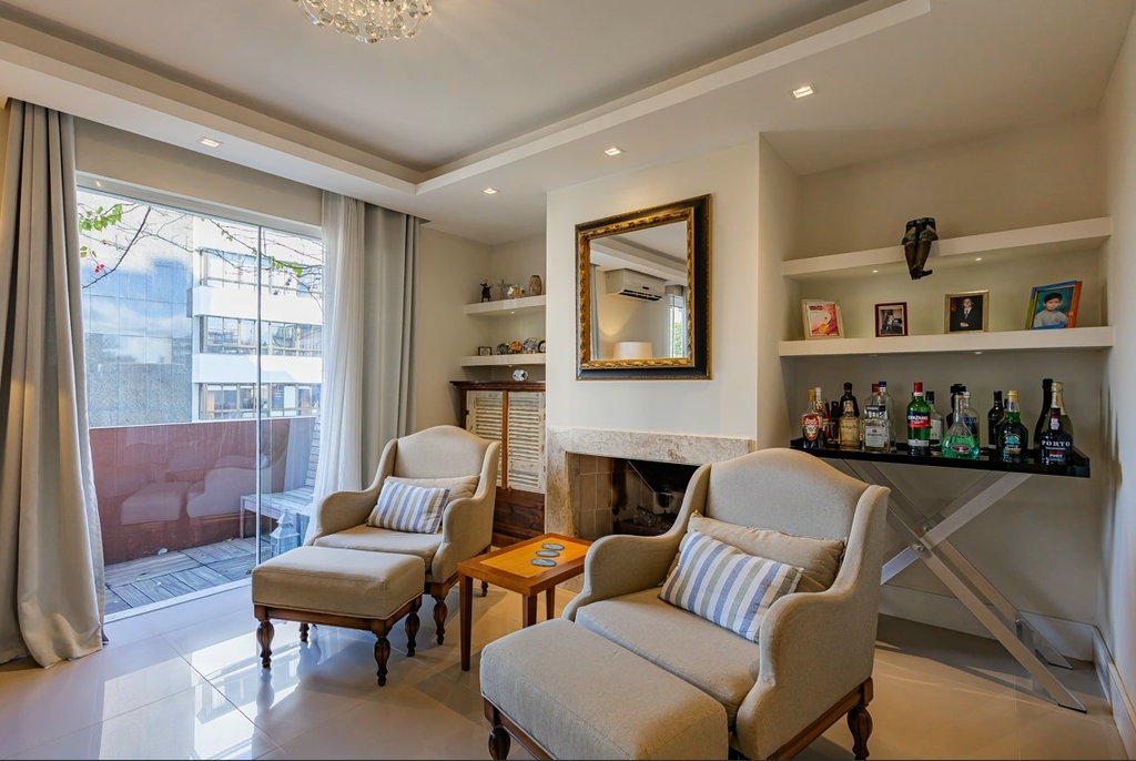 São 137m² de área privativa, 3 dormitórios sendo 02 suítes com closet, hall social com lavabo, amplo living 2 ambientes em porcelanato, com lareira, sacada, cozinha em ilha integrada, com churrasqueira.