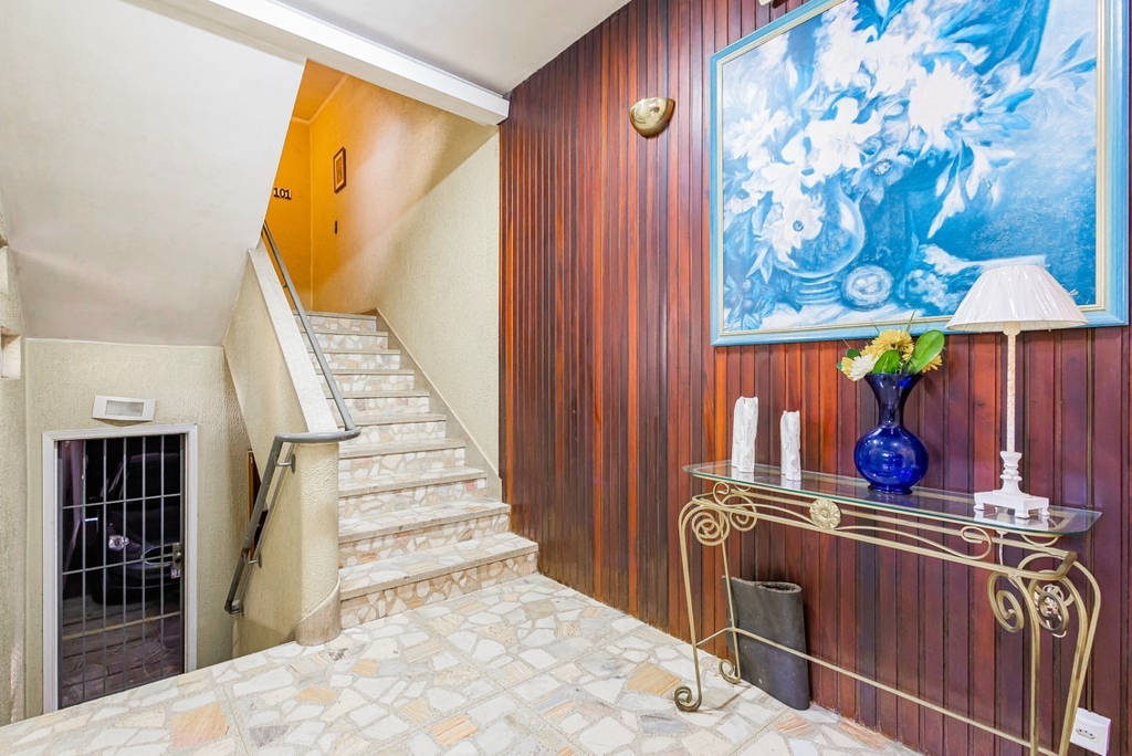 Ótima posição solar, com o sol da manhã em todo o apartamento, lareira e churrasqueira e 04 banheiros, área de serviço com armários embutidos, sacada, com 03 vagas garagem e depósito no térreo.