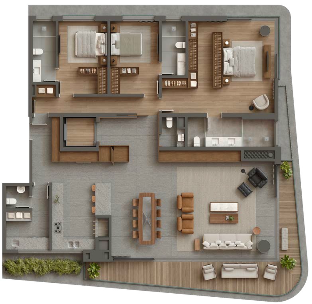 Esse jeito autêntico de ser e viver inspirou Brava. Sua arquitetura de linhas sinuosas marcantes cria dinamismo e personalidade em todos os espaços.