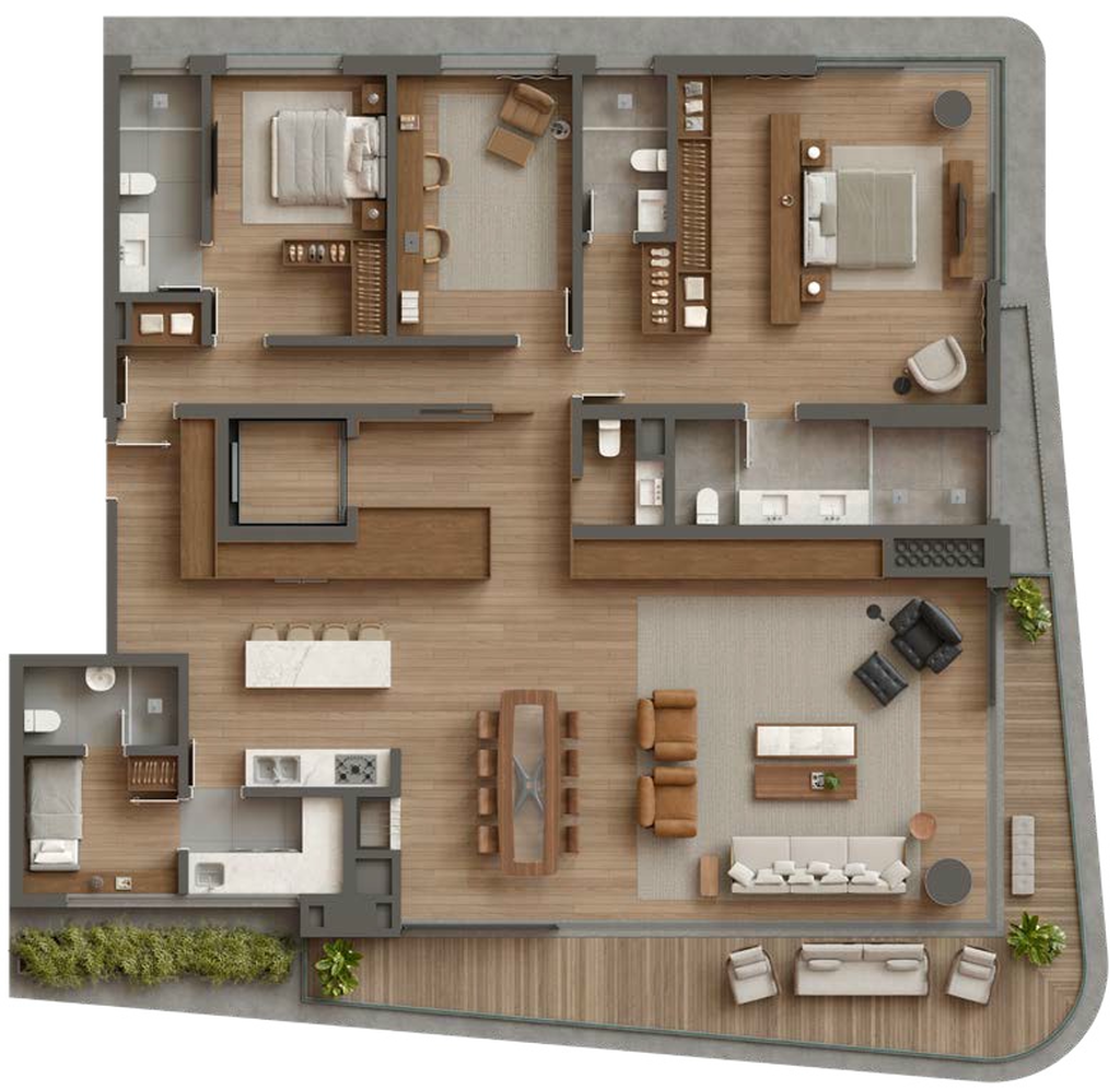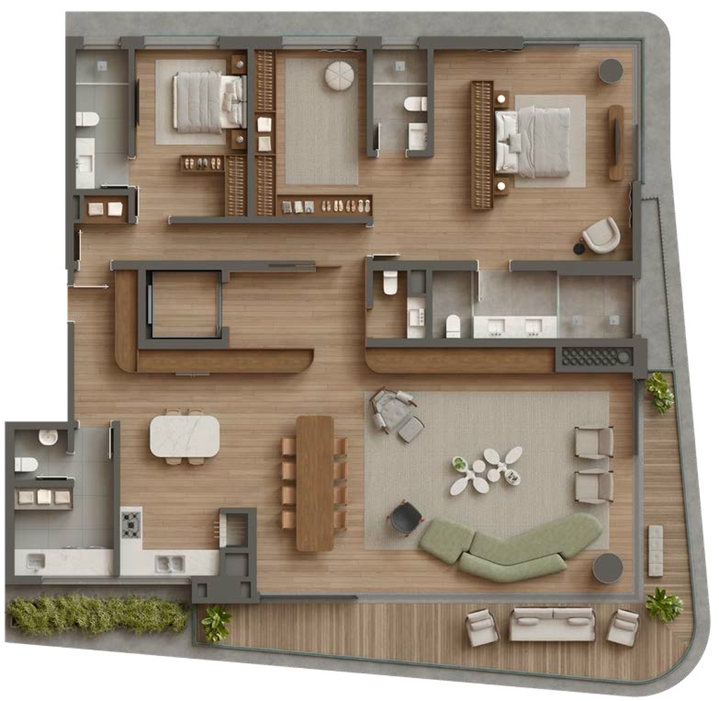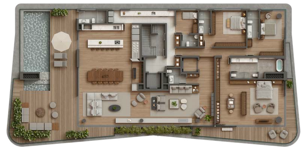 Esse jeito autêntico de ser e viver inspirou Brava. Sua arquitetura de linhas sinuosas marcantes cria dinamismo e personalidade em todos os espaços.