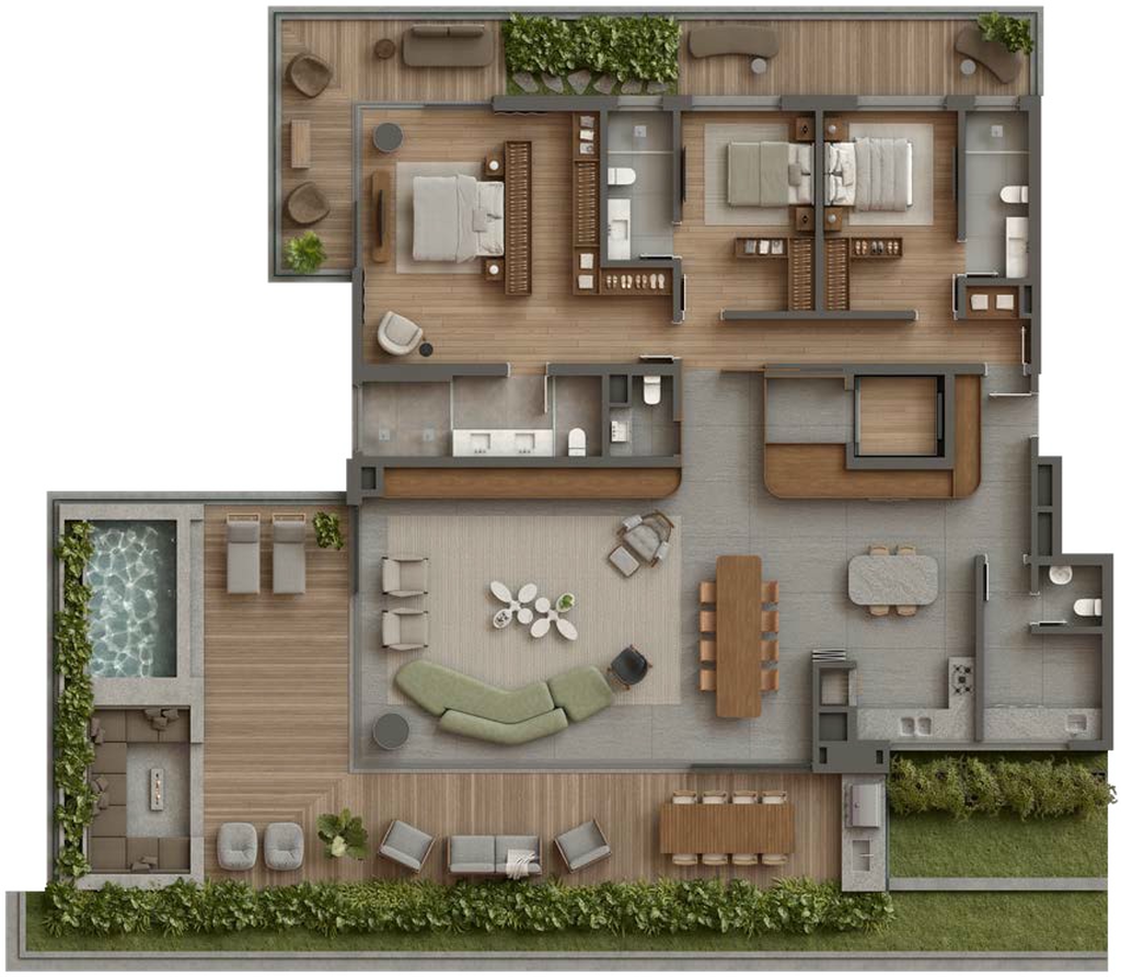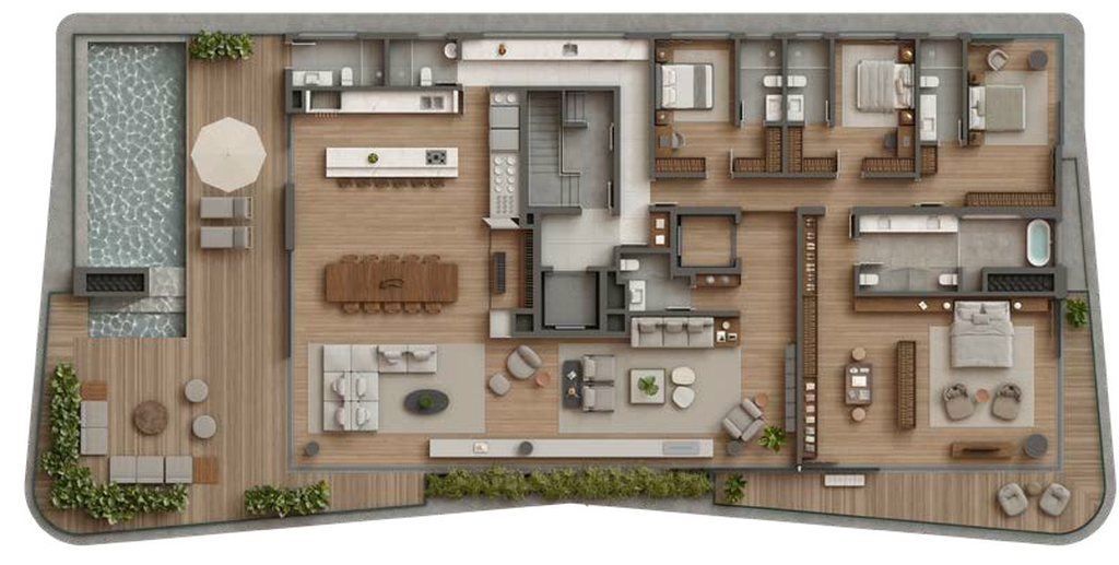 Esse jeito autêntico de ser e viver inspirou Brava. Sua arquitetura de linhas sinuosas marcantes cria dinamismo e personalidade em todos os espaços.