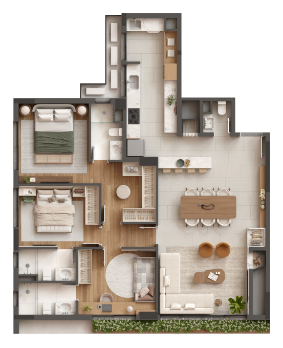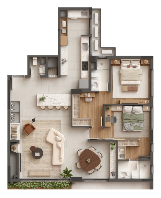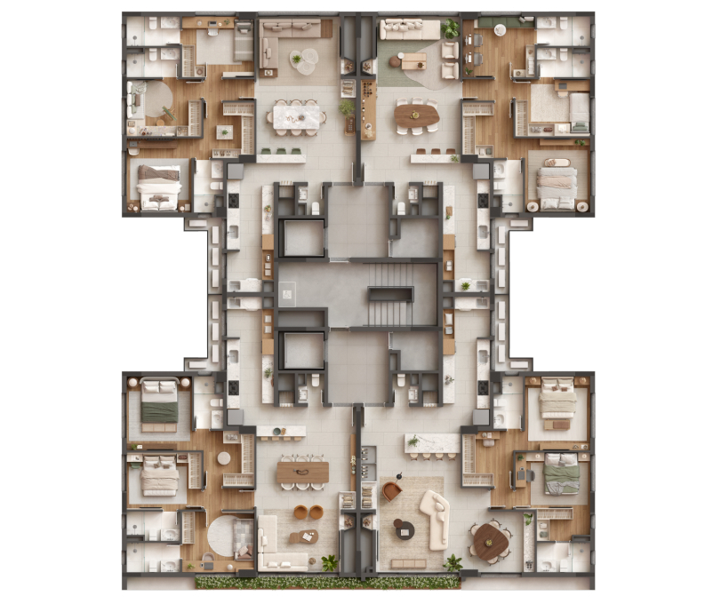 Aqui, cada moradia é mais do que apenas um apartamento, é um refúgio personalizado para você e sua família. Dos apartamentos espaçosos à infra completa e exclusiva na região, cada unidade reflete os mais altos padrões de qualidade, funcionalidade e elegância.