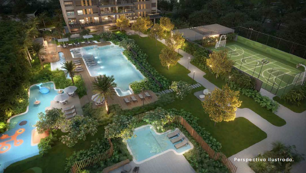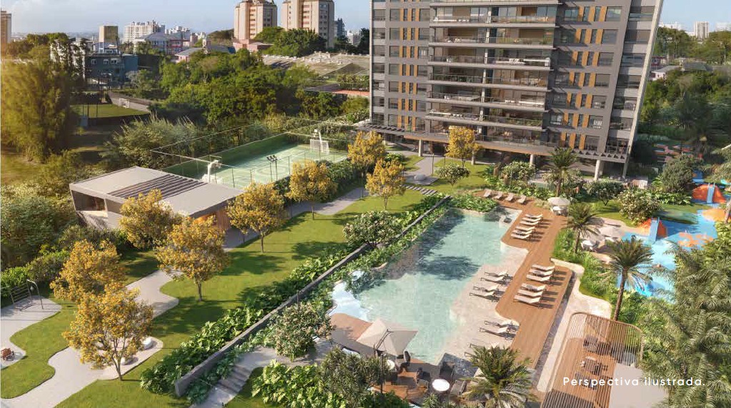 Entre os diferenciais, destacam-se as piscinas coberta e descoberta, quadras de tênis, beach tennis e poliesportiva, além de spa externo, espaço fitness, salão de festas, brinquedoteca, pet place e áreas exclusivas para crianças e adolescentes.