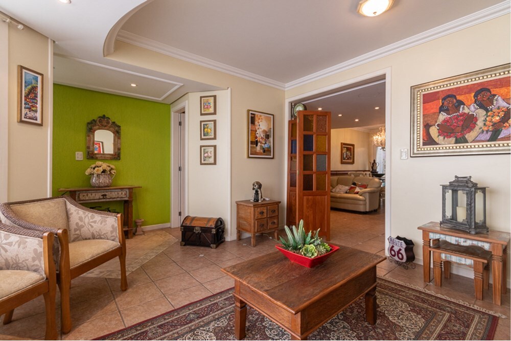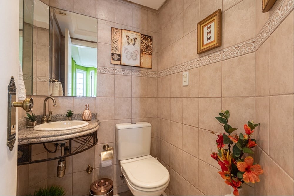 Com uma área de 420 m², a residência dispõe de 4 quartos amplos, sendo 2 com closet e 5 banheiros elegantes, perfeitos para acomodar toda a sua família.
