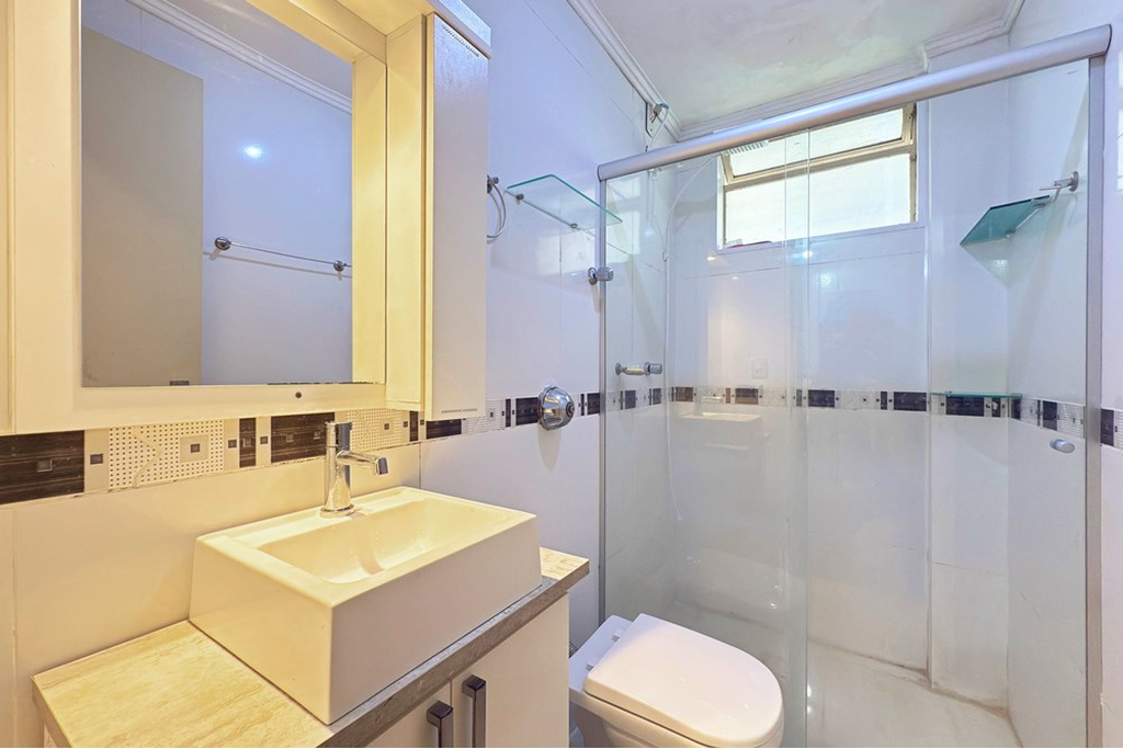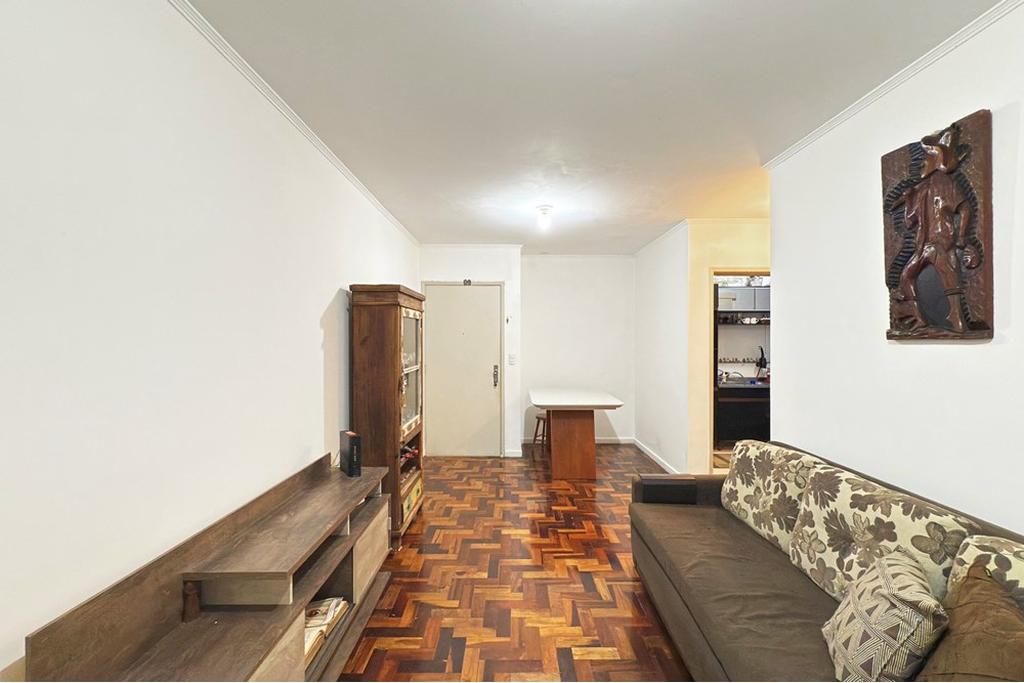 Apartamento com 61,62 m² dois dormitórios, banheiro social living para dois ambientes, cozinha integrada a espaço gourmet com churrasqueira e teto retrátil.