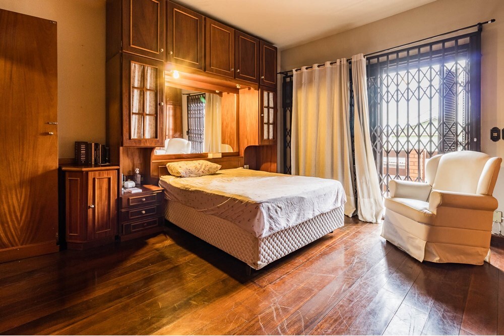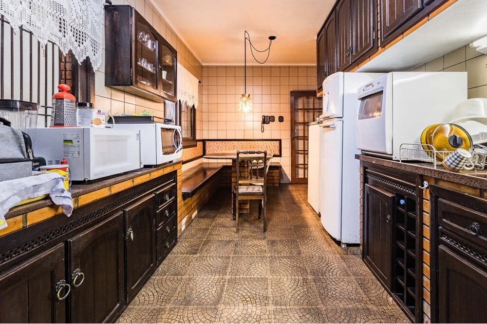 A casa dispõe quatro banheiros, um deles com banheira e uma suíte master, garantindo privacidade e comodidade para toda a família. A área de lazer é um dos grandes destaques, com piscina, churrasqueira, espaço gourmet e terraço perfeito para receber amigos e familiares. A sala de estar conta com lareira para momentos acolhedores, enquanto a cozinha ampla e bem iluminada é ideal para inspirar suas criações gastronômicas.