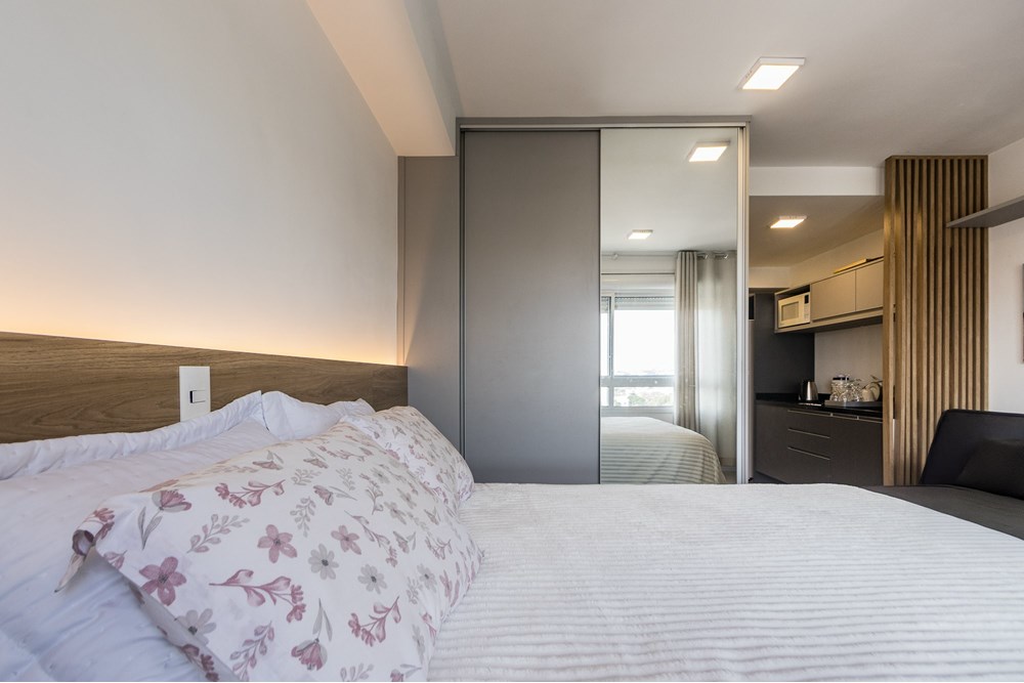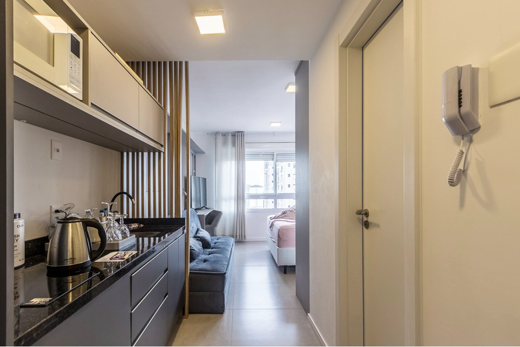 Studio de 26,53 m2 de área construída e 39,43 m2 de área total localizado na Avenida Cubanos, próximo à PUCRS.