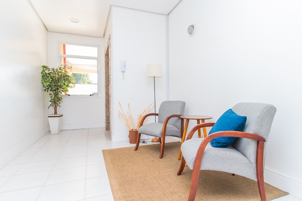 Living com 2 ambientes, cozinha americana com armários, área de serviço, banheiro social com box, boa orientação solar e muito ventilado.