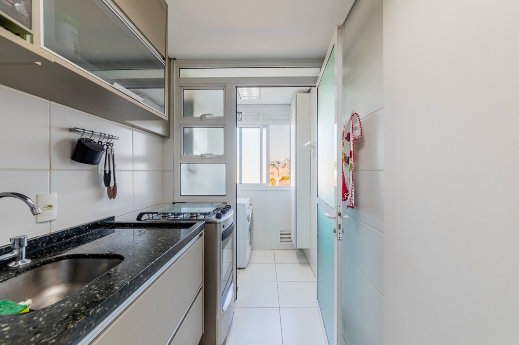 Apartamento à venda no bairro Azenha, totalmente mobiliado, com 56 m2 de área privativa em andar intermediário e vista livre.