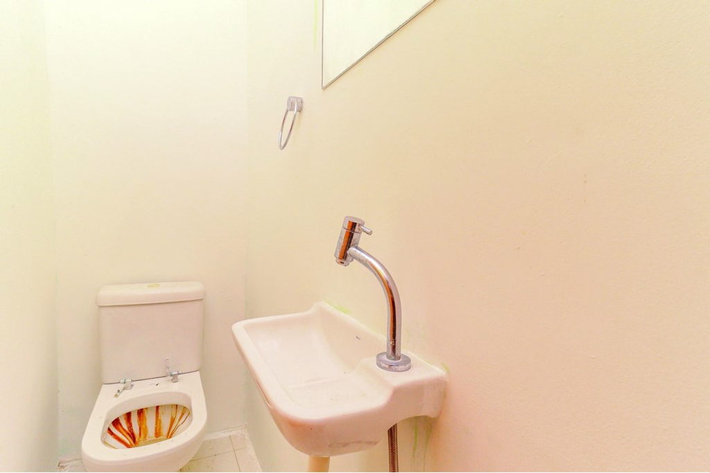 Nos fundos, a lavanderia é bem ventilada e iluminada pelo sol da manhã. Há ainda um banheiro auxiliar que complementa a área de serviço.
