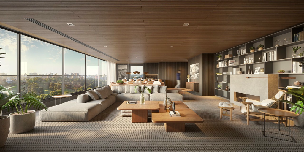 Possui 3 suítes, sendo a master com sacada e closet, living amplo com lareira e janelas do piso ao teto, churrasqueira integrada, ampla sacada, cozinha, lavabo, depósito exclusivo e 4 vagas de garagem.
