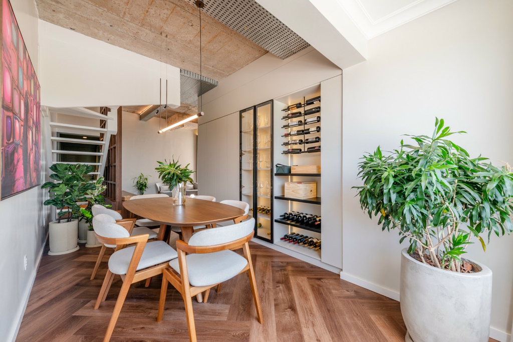 O design combina o estilo industrial com acabamentos de luxo, criando uma atmosfera única.