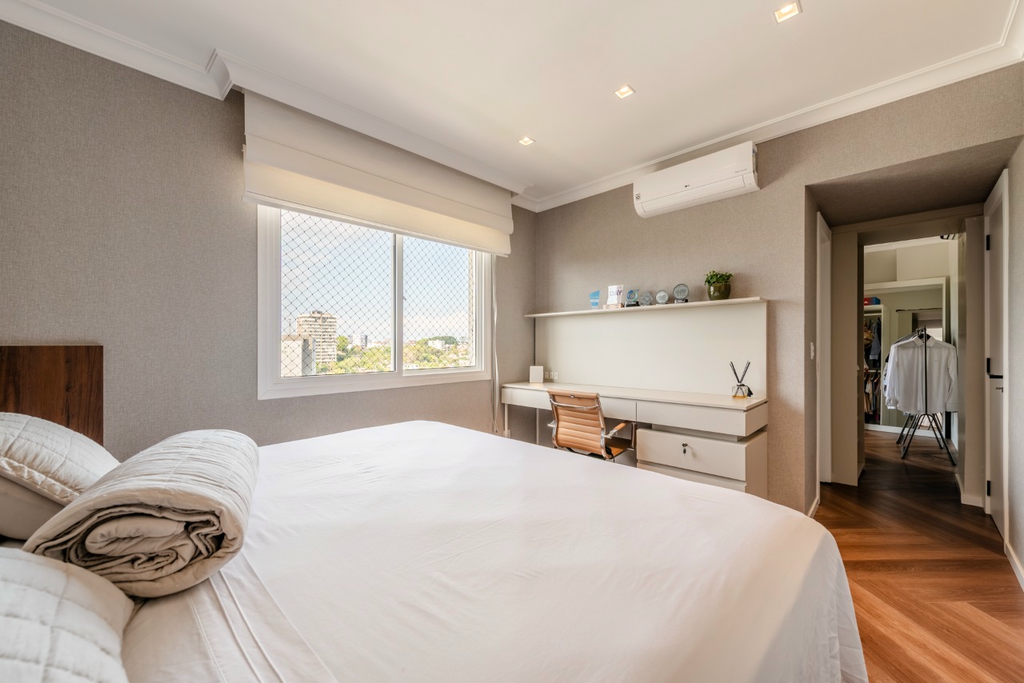 Esta cobertura transformada em 2 dormitórios + closet + office, é um verdadeiro refúgio de elegância, com decoração refinada e vistas deslumbrantes para o Parque Germânia.