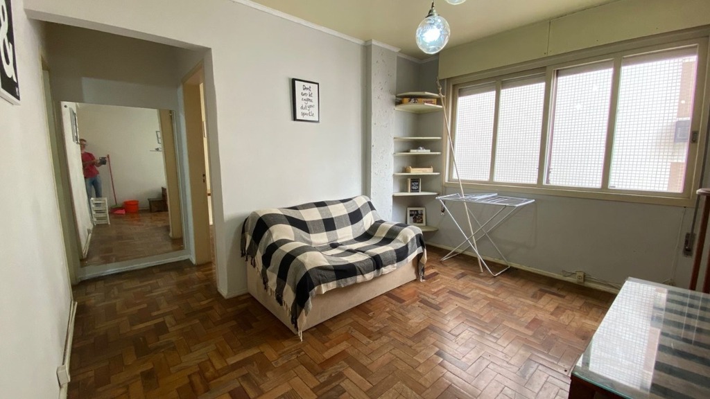 1 dormitório, andar alto, todo em parquet, living 2 ambientes, hall de entrada, cozinha com área de serviço integrada, banheiro social, dormitório com split.