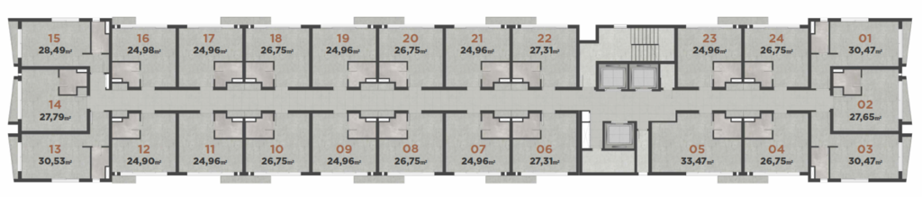 Unidades com metragens de 25 à 34m².