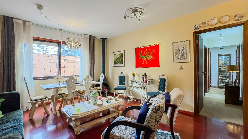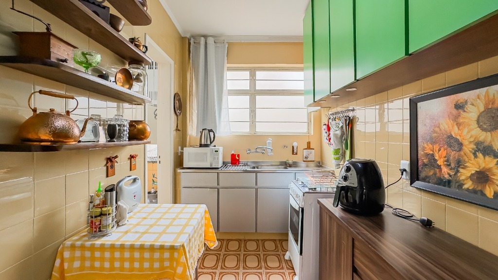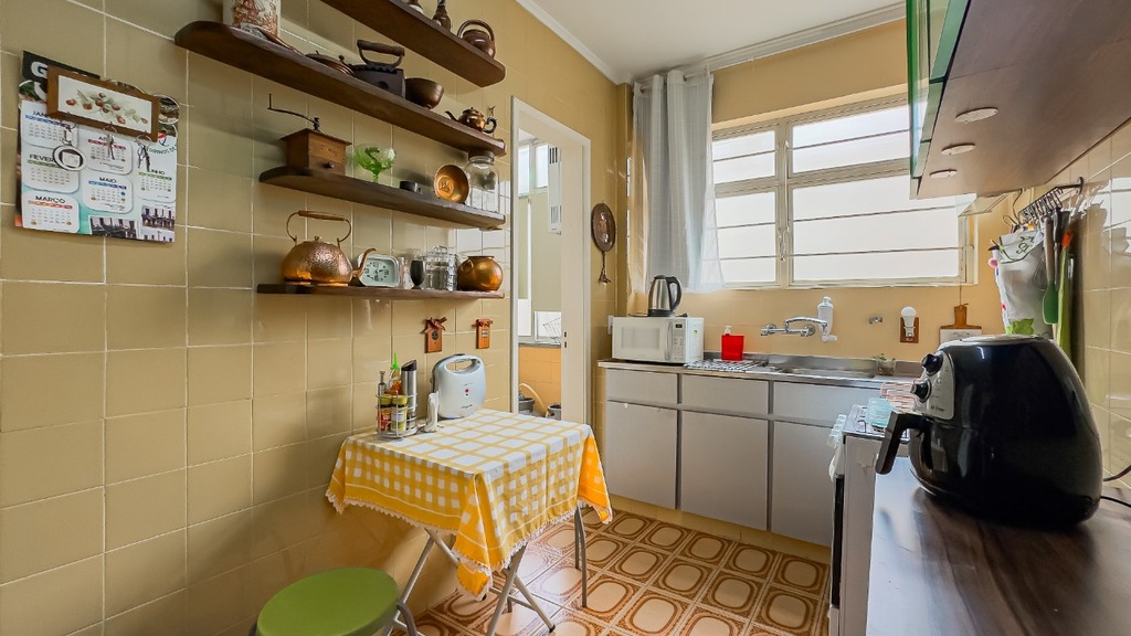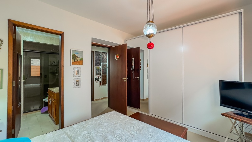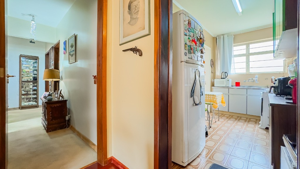 São 100 m² de área privativa - 3 dormitórios, sendo uma ampla suíte - living 2 ambientes - cozinha com área de serviço separada, dependência de empregada com banheiro auxiliar e água quente.