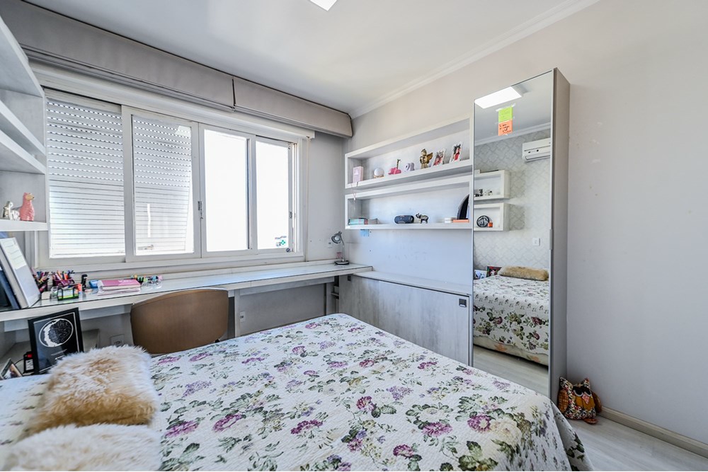 Dispõe de 4 dormitórios, sendo 1 com closet, 1 suíte, 1 quarto simples e outra suíte criada a partir da antiga dependência de empregada, além de banheiro social.