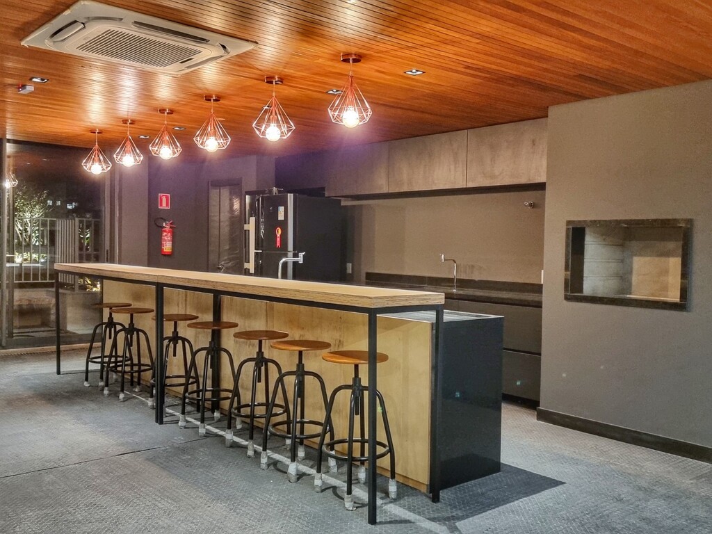 Um projeto que contempla mais de 1000 m² de áreas de lazer, convívio e compartilhamento, com portaria 24h, hall de entrada, lobby, work station, ateliê, mercadinho, salão de festas, academia, lavanderia, varanda, piscina, bicicletário, gerador, água aquecida por painéis solares e ponto de energia para carro elétrico.