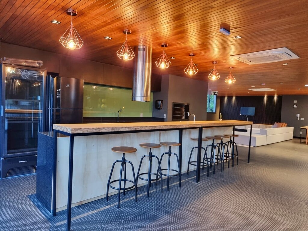 Um projeto que contempla mais de 1000 m² de áreas de lazer, convívio e compartilhamento, com portaria 24h, hall de entrada, lobby, work station, ateliê, mercadinho, salão de festas, academia, lavanderia, varanda, piscina, bicicletário, gerador, água aquecida por painéis solares e ponto de energia para carro elétrico.