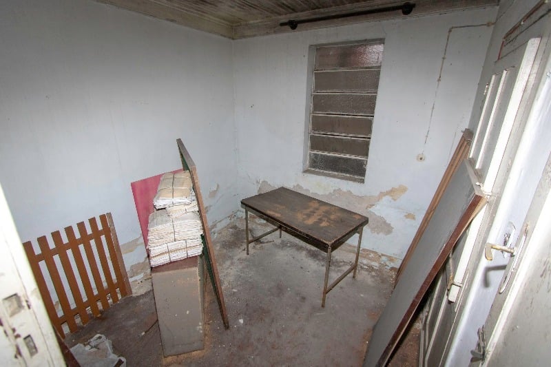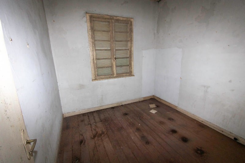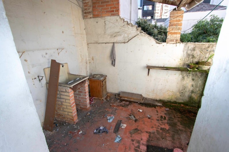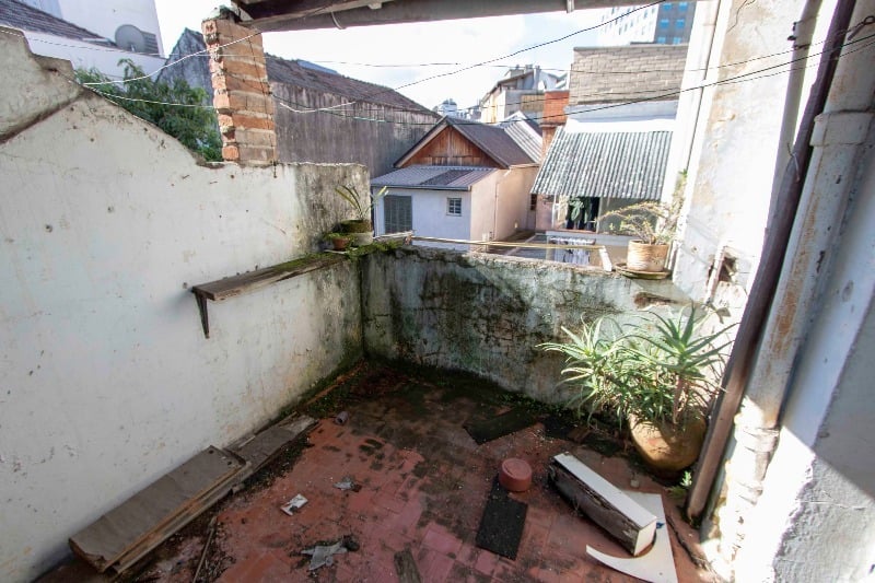 Também tem uma escada que dá acesso a um pátio de fundos, com um quarto.