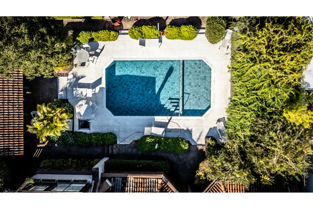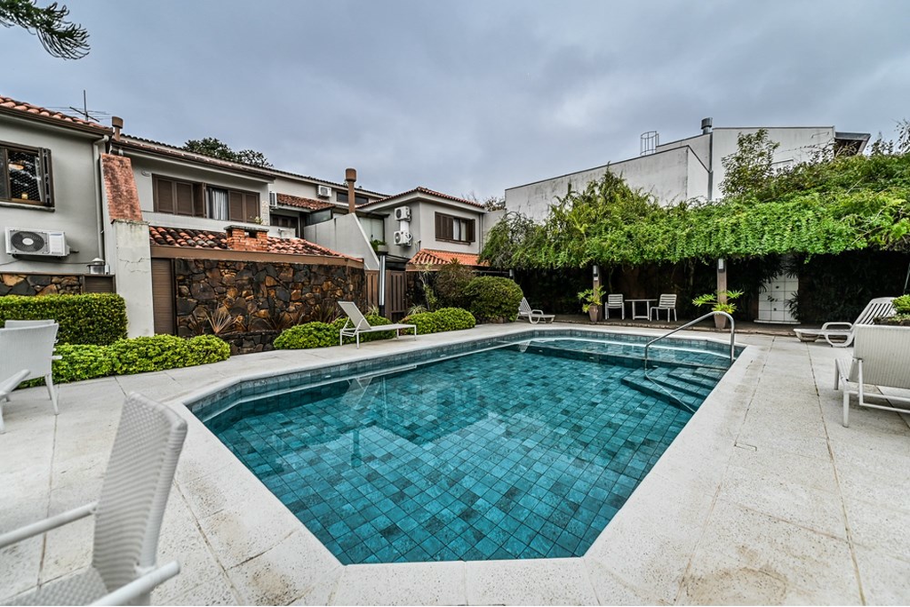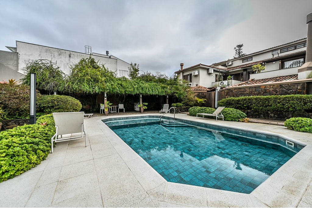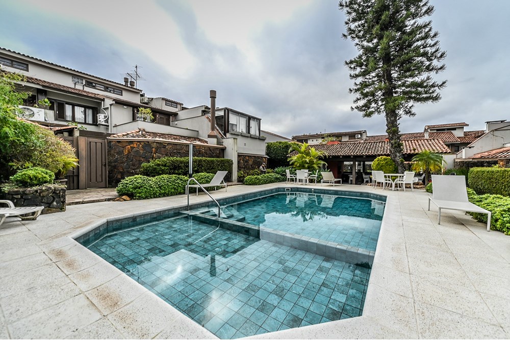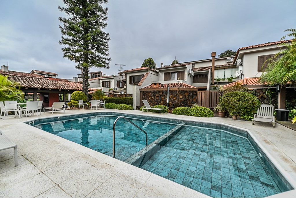 A área externa conta com piscina e um jardim interno, perfeitos para momentos de lazer e relaxamento.