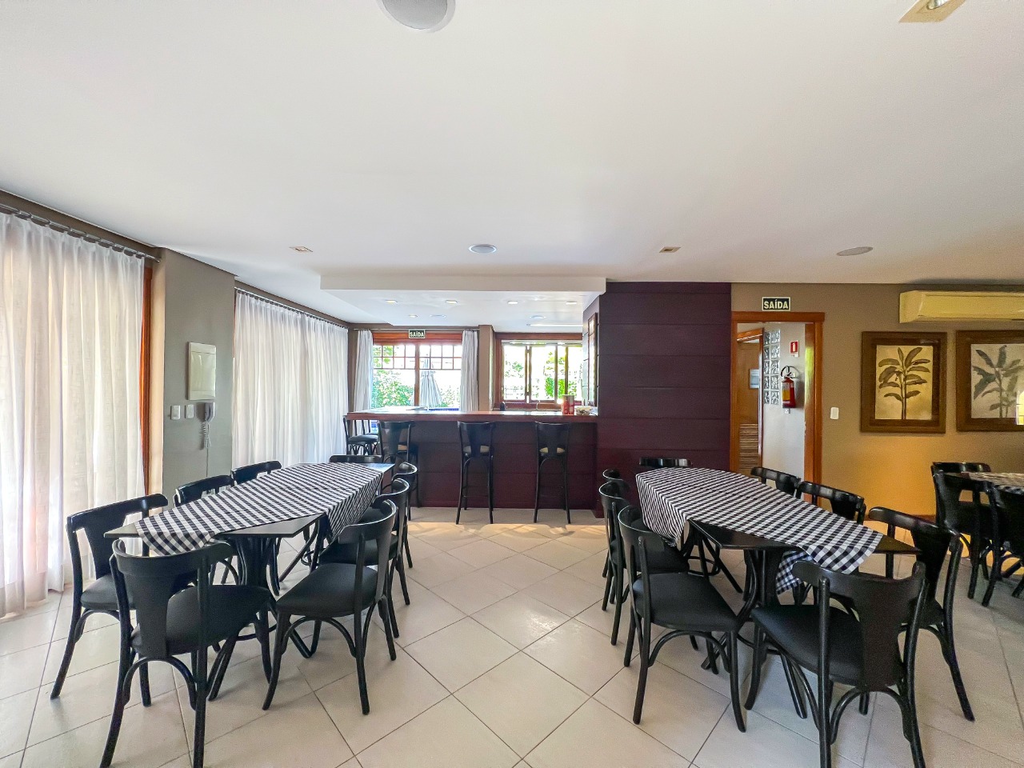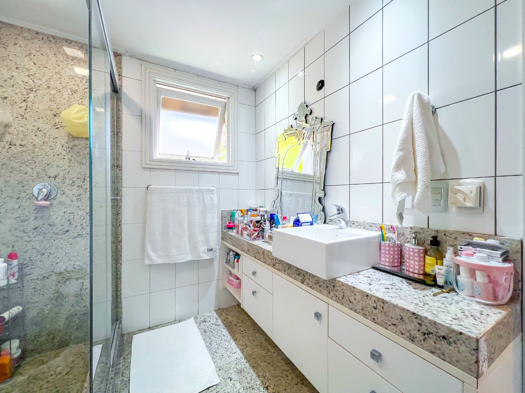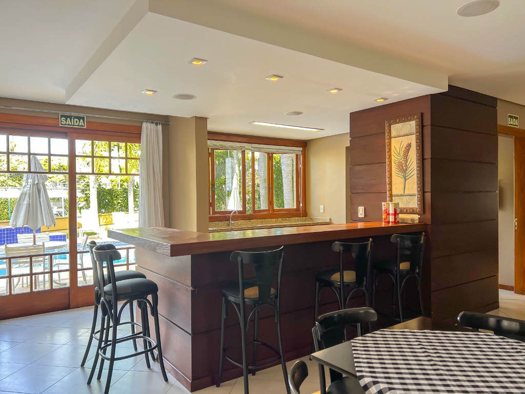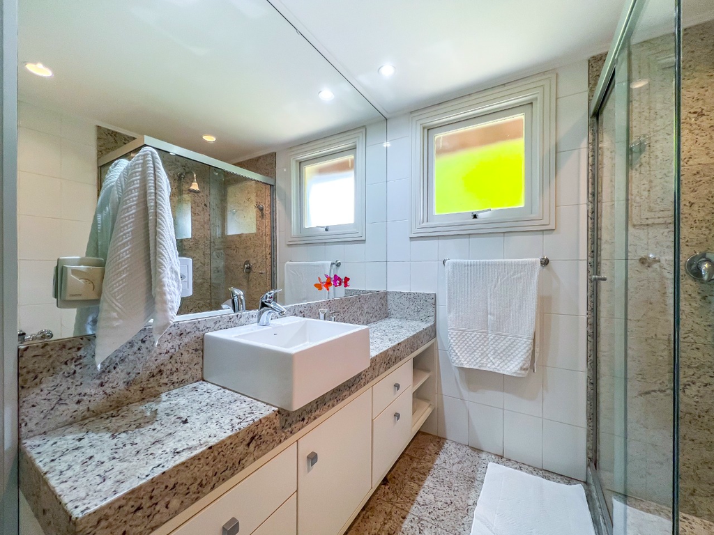 Ainda neste nível, encontram-se um lavabo, um escritório, a cozinha equipada com móveis sob medida, além de uma área de serviço e dependência de empregada completa.