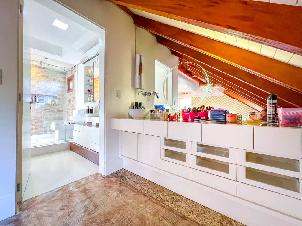 Com quatro vagas de garagem cobertas e espaço adicional para visitantes de até seis veículos, a casa está situada em um condomínio que oferece portaria 24 horas, piscina aquecida, quadra esportiva, salão de festas decorado com lareira, churrasqueira e sistema de som, academia equipada, playground, câmeras de segurança e ronda noturna na parte interna, reunindo segurança, lazer e conforto em um único e exclusivo endereço.