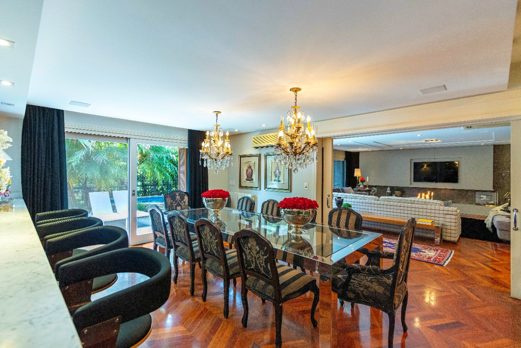 Esta belíssima residência de alto padrão oferece 4 suítes em 632m² de área privativa, elegantemente distribuídos para proporcionar conforto e funcionalidade.