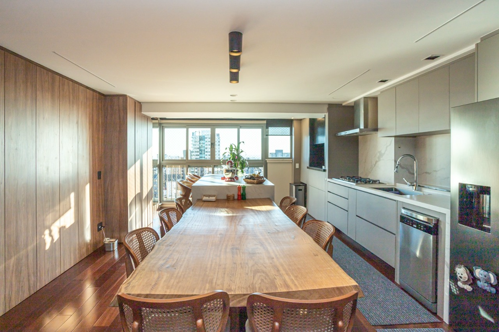 O espaço gourmet é integrado, ideal para receber com conforto. Conta ainda com lavabo, lavanderia separada e depósito privativo dentro do próprio apartamento.