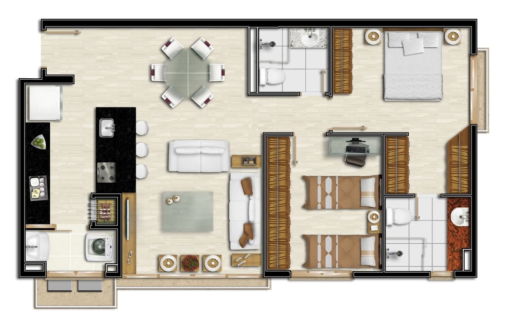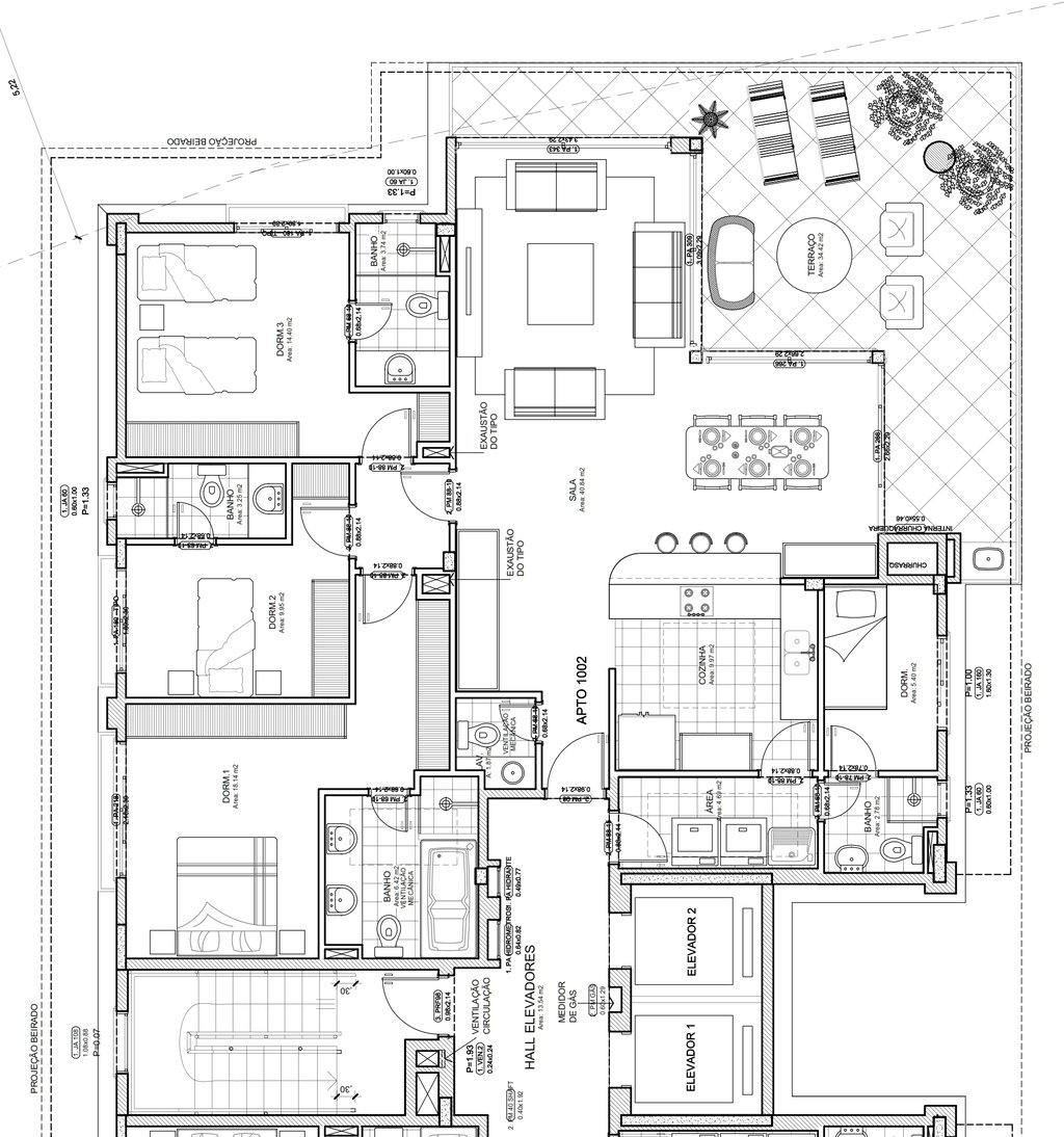 Áreas privativas de 79,92m² (aptos. tipo finais 01, 02 e 04) 78,13m² (aptos. tipo finais 03).