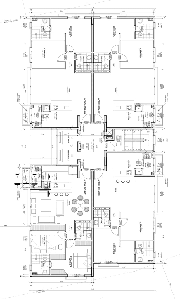 Empreendimento com 32 apartamentos, sendo 4 por andar, e 2 boxes com depósito por apartamento.