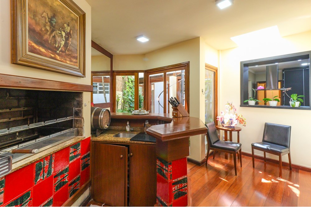 O imóvel é riquíssimo em amenidades, incluindo um lindo jardim, três churrasqueiras (interna, externa e na garagem) e ainda terraço. Dispõe também de um escritório/biblioteca para momentos de estudo ou trabalho, armários embutidos, suíte com closet e uma cozinha gourmet muito bem equipada.