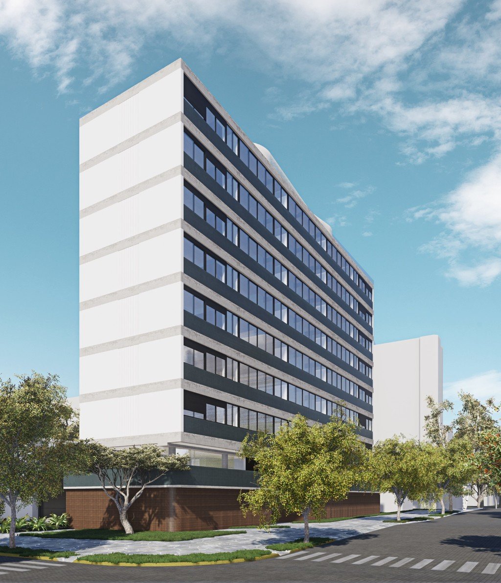 O edifício conta com um projeto arquitetônico moderno e sofisticado.