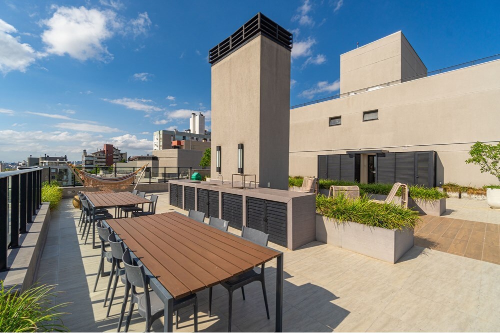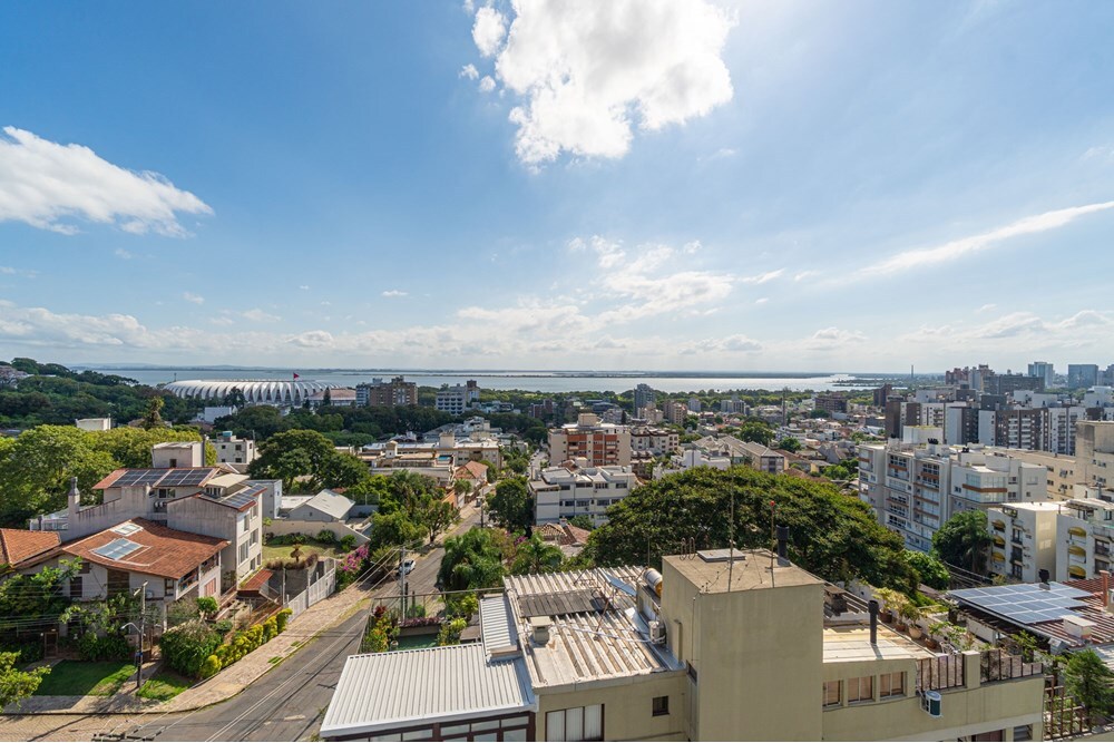 Terraço coletivo com uma vista deslumbrante para o Guaíba, Portaria 24h, serviço de zeladoria e elevadores.