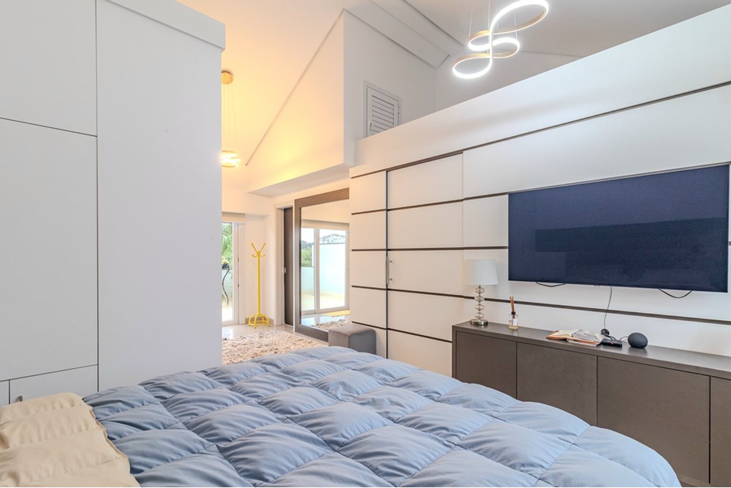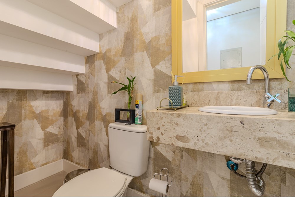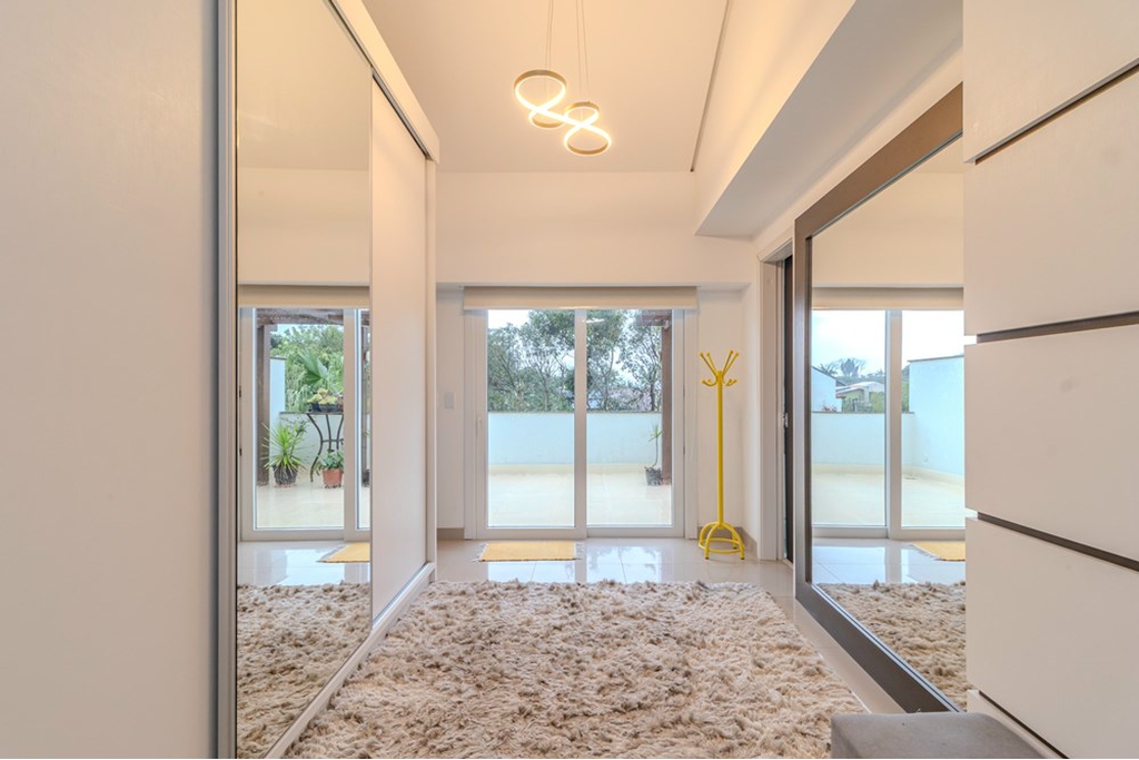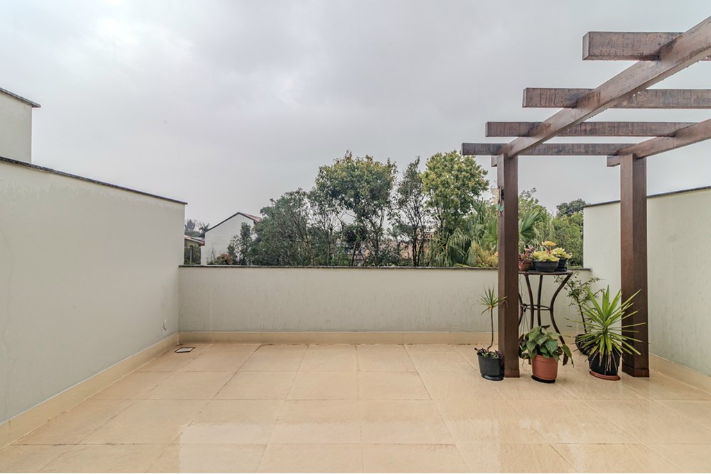 No segundo pavimento conta com uma suíte, banheiro social e dois dormitórios, sendo um deles utilizado como escritório. No terceiro pavimento há uma suíte master com closet e amplo terraço.