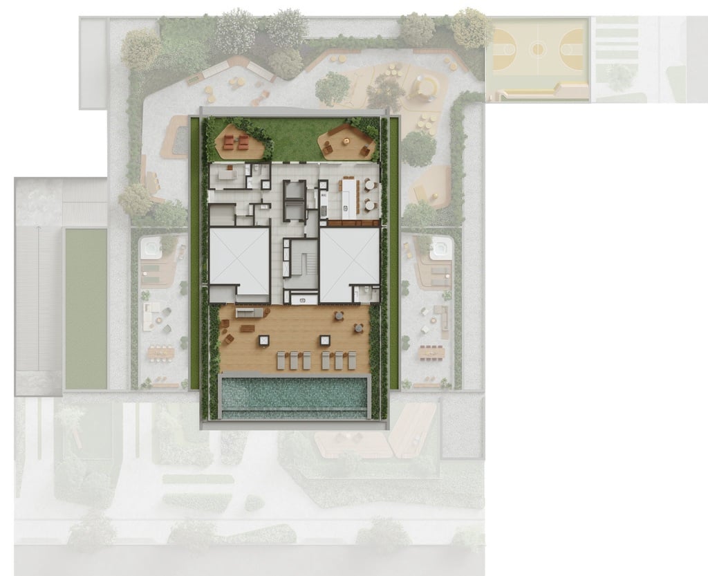 Seu design é marcado pela leveza de suas linhas sinuosas, pelo concreto aparente e pelos tons que estabelecem um diálogo contínuo com o entorno.