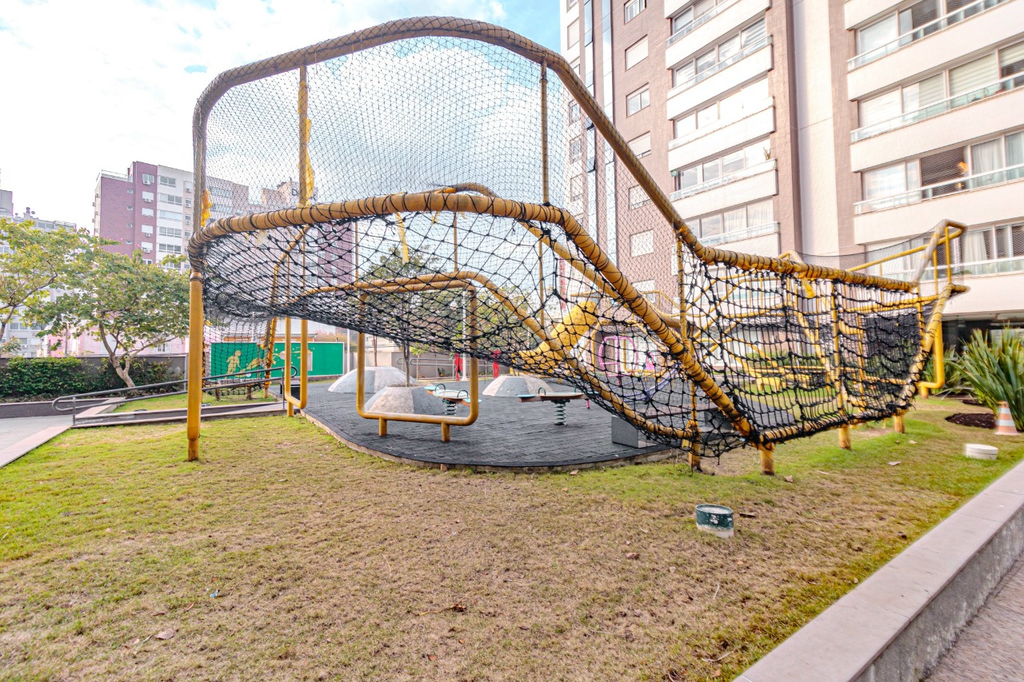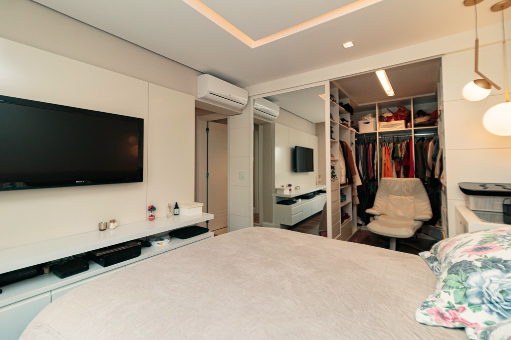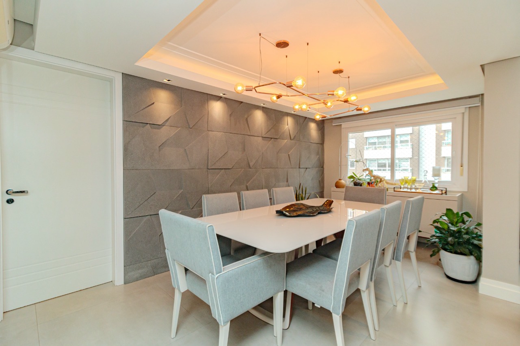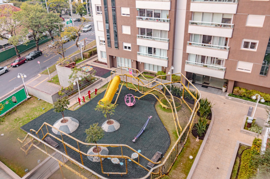 O apartamento está semi mobiliado, com móveis planejados de muito bom gosto, e possui três vagas de garagem cobertas.