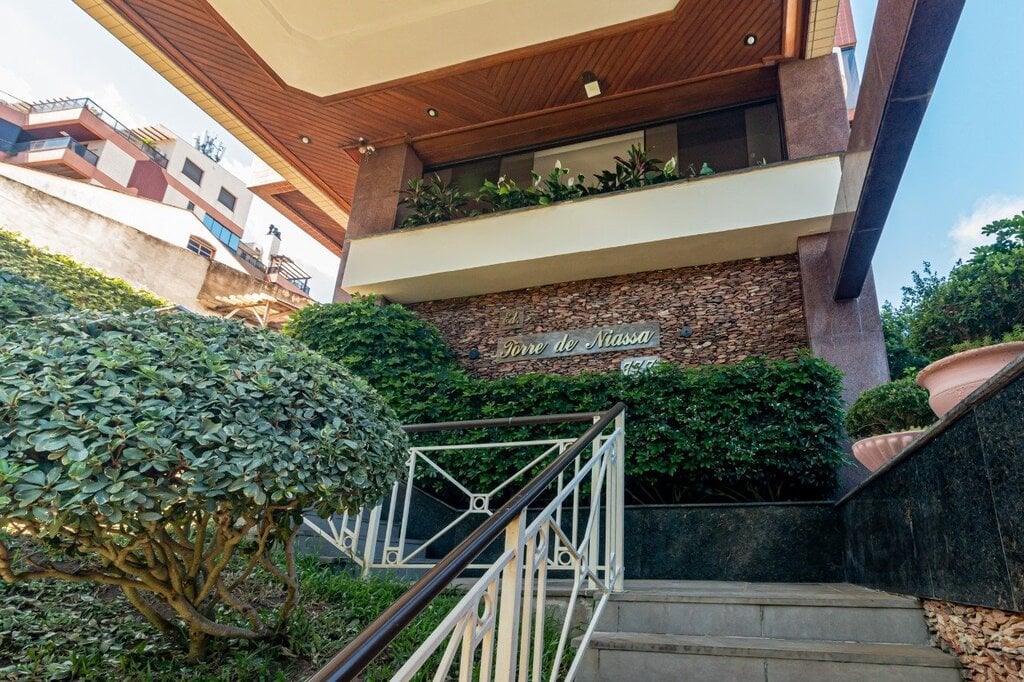 Ampla cozinha e copa, área de serviço, sacada com churrasqueira e vaga coberta para veículo.